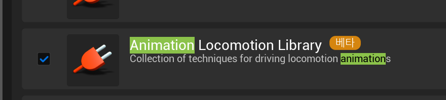 - 새 프로젝트에서 'Animation Locomotion Library' 플러그인을 활성화 시켜주고 재시작을 진행해 줍니다.