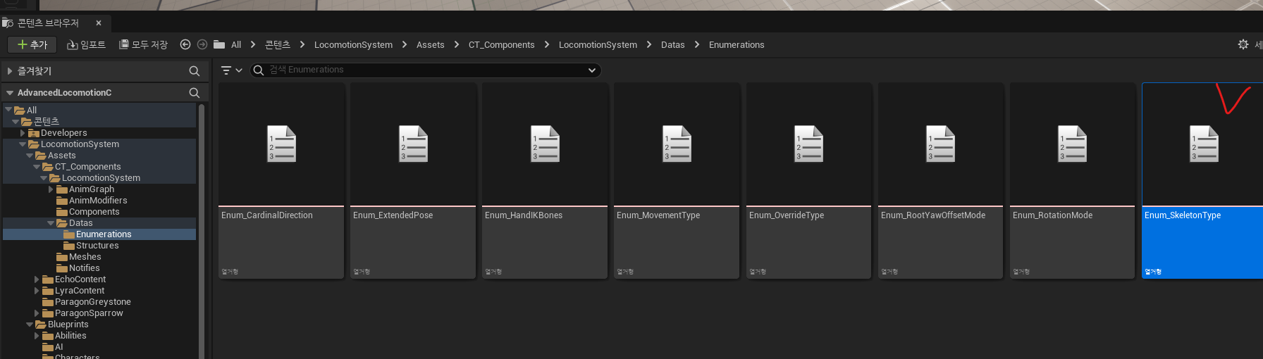 - Enum_SkeletonType 파일을 열어 UE5 캐릭터만 남기고 나머지는 없애줍니다.