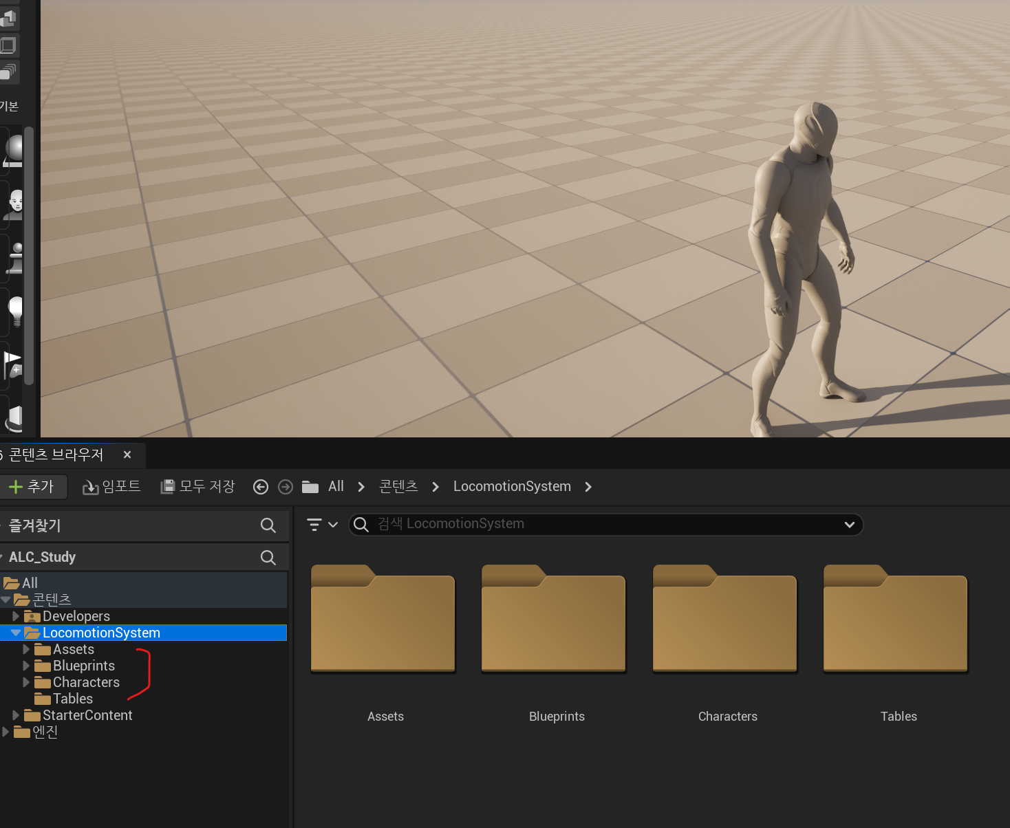 ALC(Advanced Locomotion Component)같은 경우 서로 얽혀 있는 로직이 너무 많다 보니 트리플 A에서 사용될 RPG 로코모션 기능만 확인하는데 어려움이 있을수 있어 Unarmed의 Velocity Direction기능만 추려서 해당 기능만 집중적으로 파악해 보도록 하겠습니다.