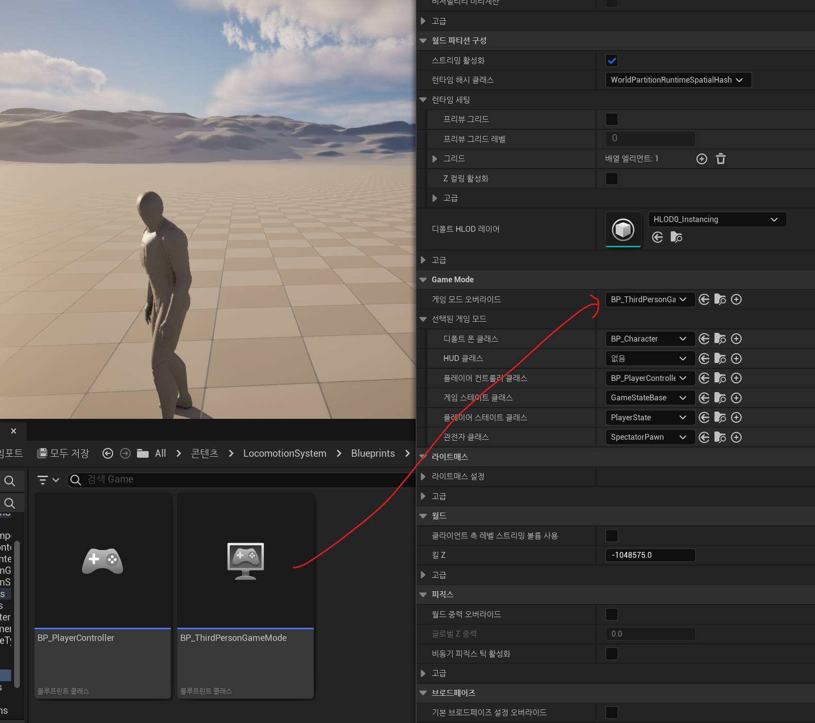 - 여기까지 진행하시고 게임모드를 새로 이주해온 게임모드로 게임을 실행하시면 캐릭터가 정상적으로 잘 움직이는 것을 확인할 수 있습니다.