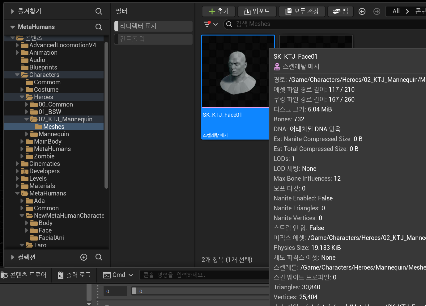 - 이유 1 - 내가 원하는 모델 느낌이 아님.. 메타휴먼이 디폼하면서 모양이 깨짐