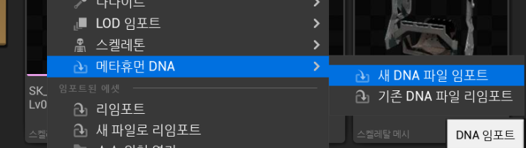 야에서 위에서 생성한 DNA 불러오기 - 전체 릭용 DNA만 불러서 편집할 수 있다. 조인트 전용 DNA는 편집 불가