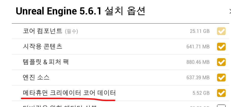 - 엔진 필수 요소 - 런처에서 메타 휴먼 크리에이터 코어 데이터 설치