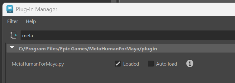 - 설정 완료 후 플러그인 설치를 하면 마야에서 메타휴먼 플러그인을 호출할 수 있습니다.